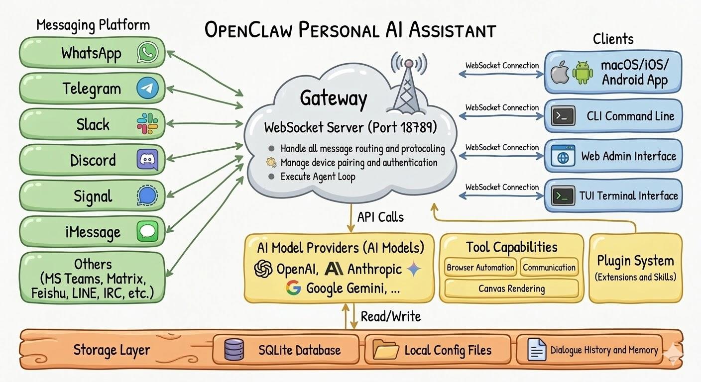 OpenClaw 是一个长运行时系统,采用本地优先、自托管的架构设计。